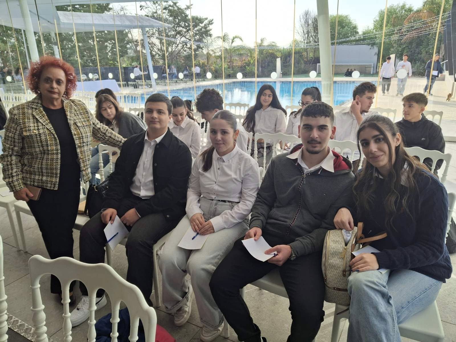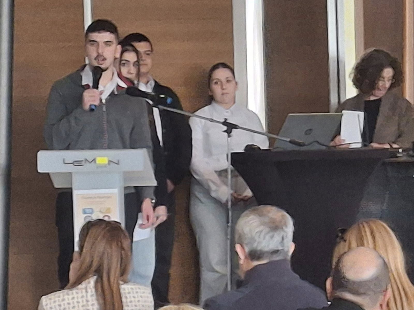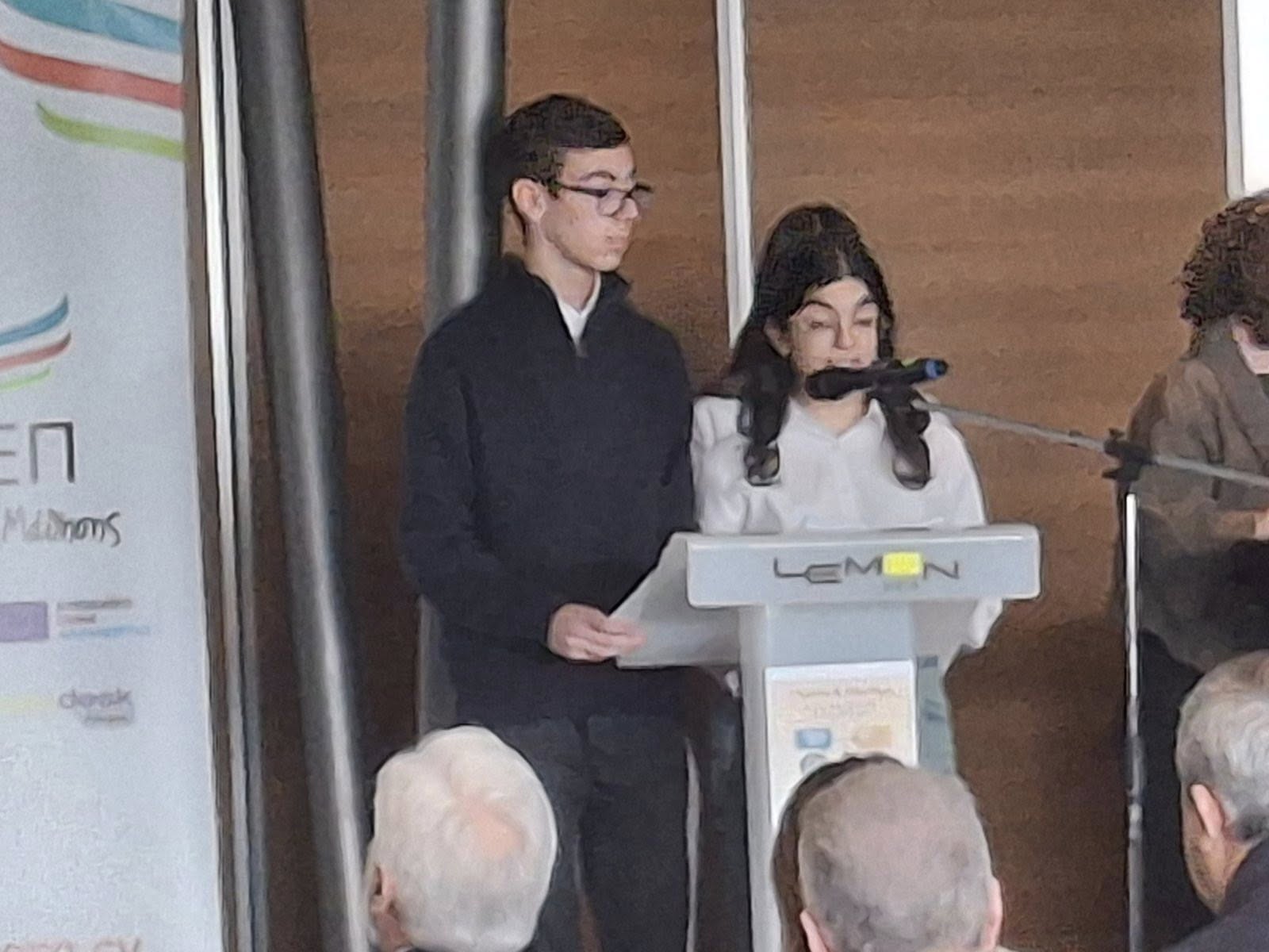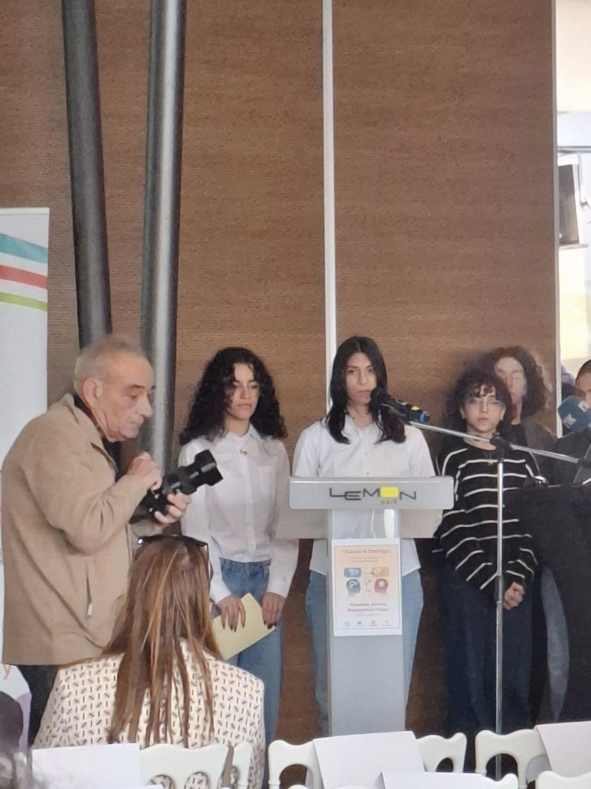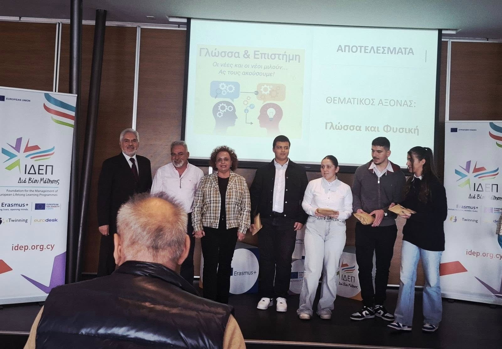 Η ομάδα μας, που διακρίθηκε με το πρώτο βραβείο, αποτελείται από τον Μιχαηλουδη Κυριάκο (Β31), τη Θεοφάνους Σωτηρία (Β31), τον Πηλείδη Κωνσταντίνο (Β32) και τη Διογένους Μαρίνα (Β32). Τα παιδιά μας διαγωνίστηκαν στην κατηγορία "Γλώσσα και Φυσική" και προετοιμάστηκαν από τους καθηγητές τους Γιώργο Παπαδόπουλο (καθηγητή γαλλικών) και Δώρα Ορφανίδου (καθηγήτρια φυσικής). Η ομάδα ονομάστηκε "Αρχιμήδης" και το θέμα που κλήθηκαν να αναπτύξουν και να παρουσιάσουν ήταν "Η φυσική και η φιλοσοφία έχουν ηλικία μερικών χιλιάδων ετών, αλλά πιθανότατα έχουν ζωή χιλιάδων εκατομμυρίων ετών ακόμα μπροστά τους. Είναι ακόμα στην αρχή". Τα παιδιά μας μπήκαν στα πεδία της φιλοσοφίας, και στήριξαν τον ρητορικό τους λόγο αρχίζοντας από την ατομική θεωρία του Δημόκριτου, πέρασαν στο ατομικό πρότυπο του Bohr , των πρωτονίων, ηλεκτρονίων και νετρονίων και έπειτα στη σύγχρονη φυσική της κβαντομηχανικής και των κουάρκς. . Δίκαια κατέκτησαν την πρωτιά και τους χειροκροτούμε με περηφάνια