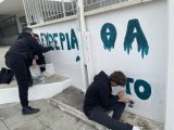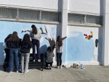 Τοιχογραφία με θέμα την «Ελευθερία» και τα ανθρώπινα δικαίωματα. Σύνθεση από προσχέδια μαθητών κ μαθητριών.