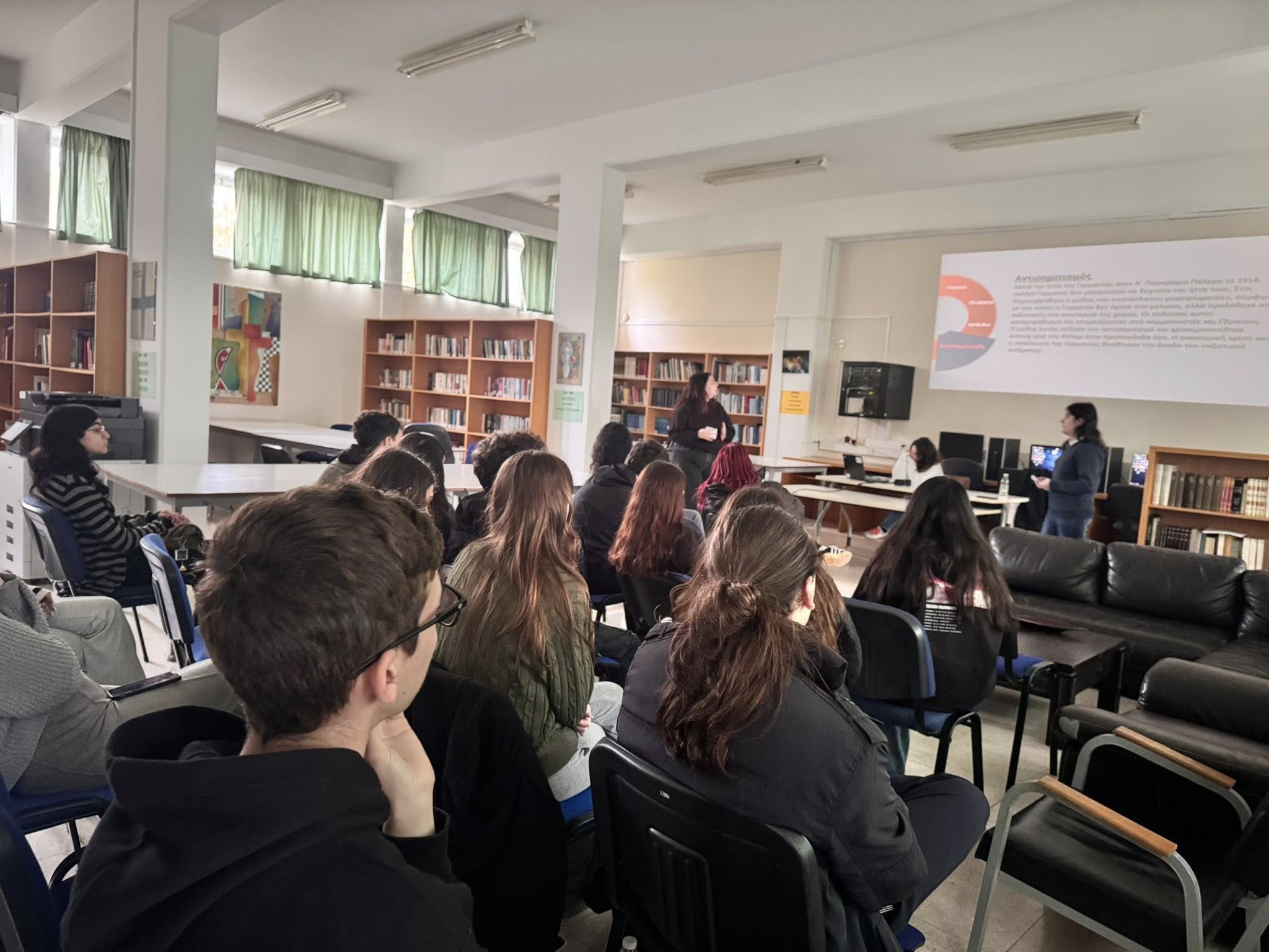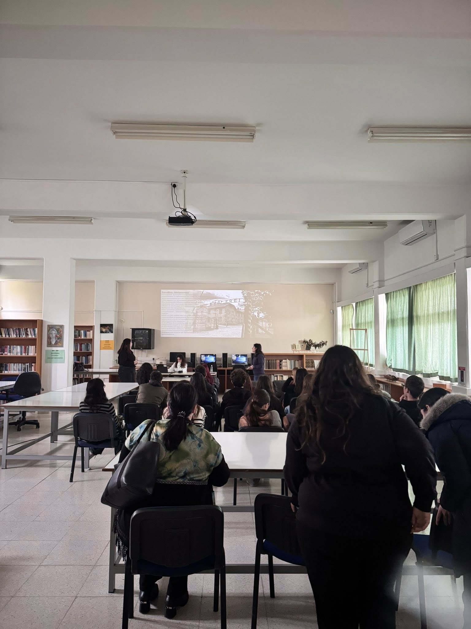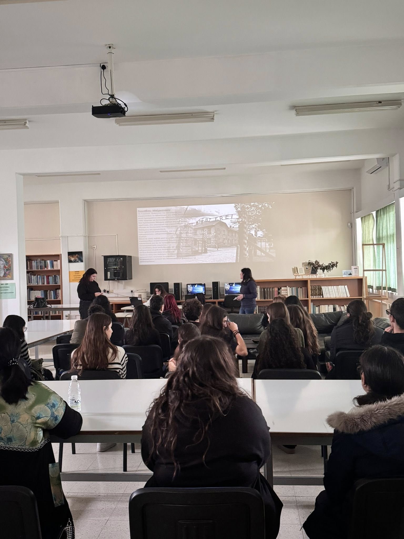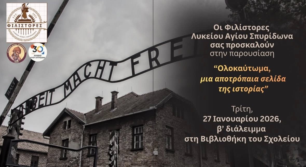 Η 27η Ιανουρίου ορίστηκε να μας θυμίζει το απάνθρωπο του Ολοκαυτώματος. Η επετειακότητα έδωσε στους Φιλίστορες μας την αφορμή να παρουσιάσουν το θέμα “Ολοκαύτωμα, μια αποτρόπαια σελίδα της ιστορίας”. Η μελέτη των πηγών και η παρουσίαση του θέματος έγινε από τις μαθήτριες Τσολακίδου Σοφία (Γ1), Δημητριάδου Θεοδώρα (Γ1) και Βαρτελά Μαρία- Σπυριδούλα (Γ32) με την καθοδήγηση της φιλολόγου Χρυσής Χουβαρτά.