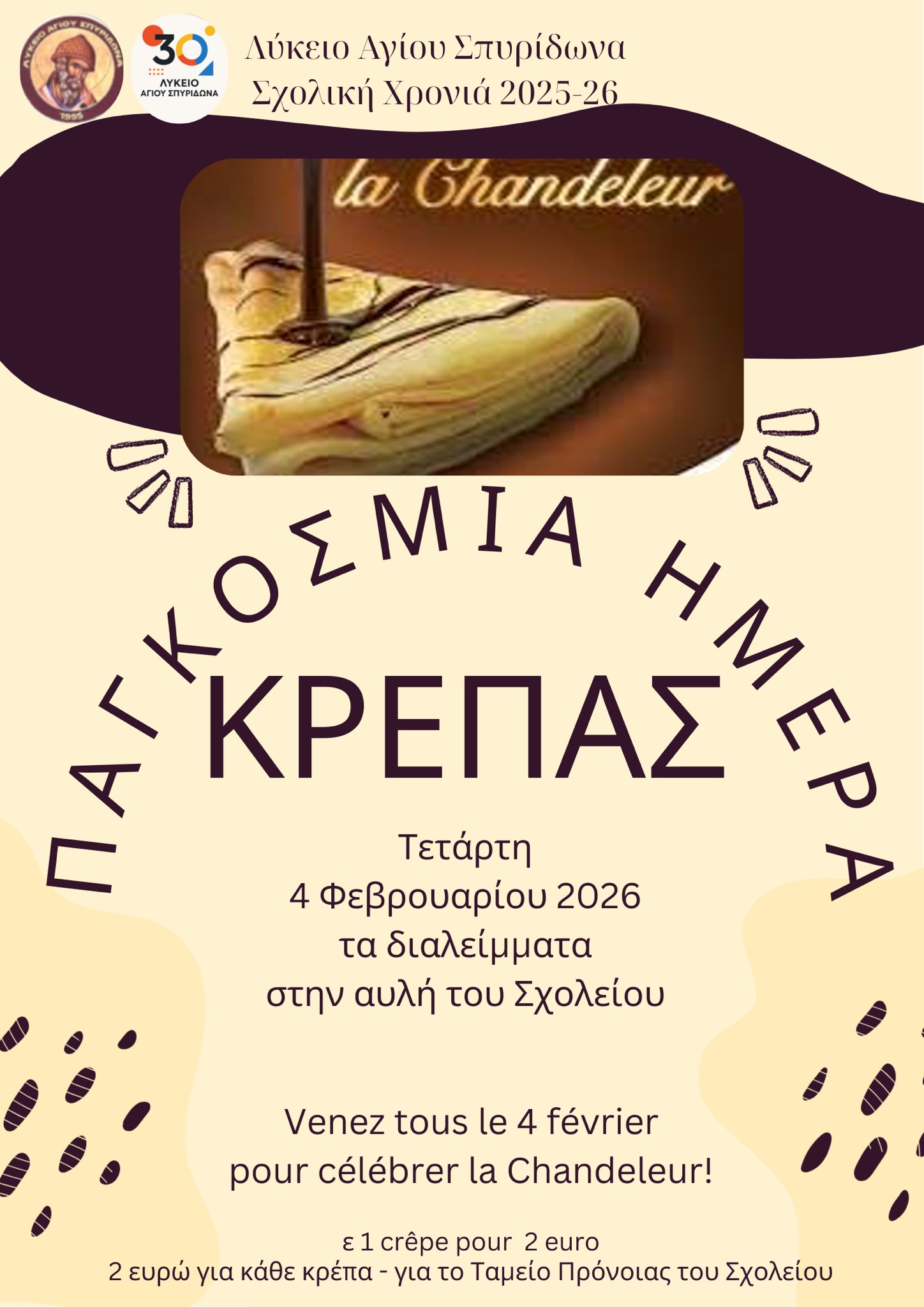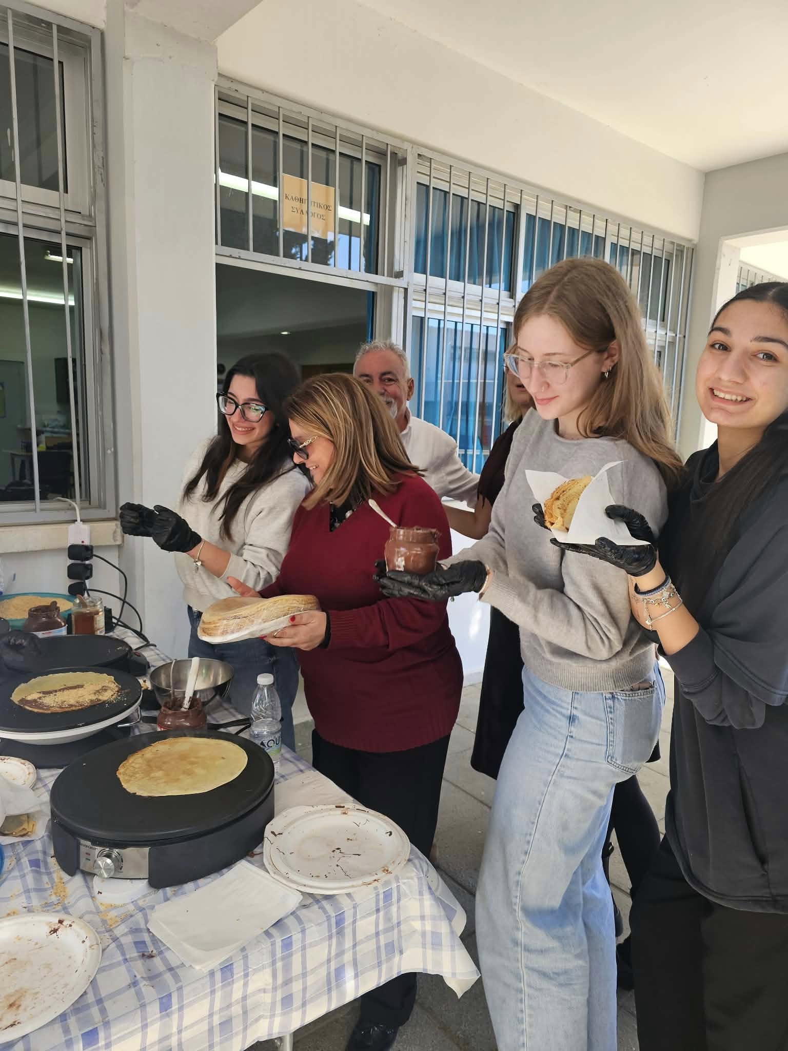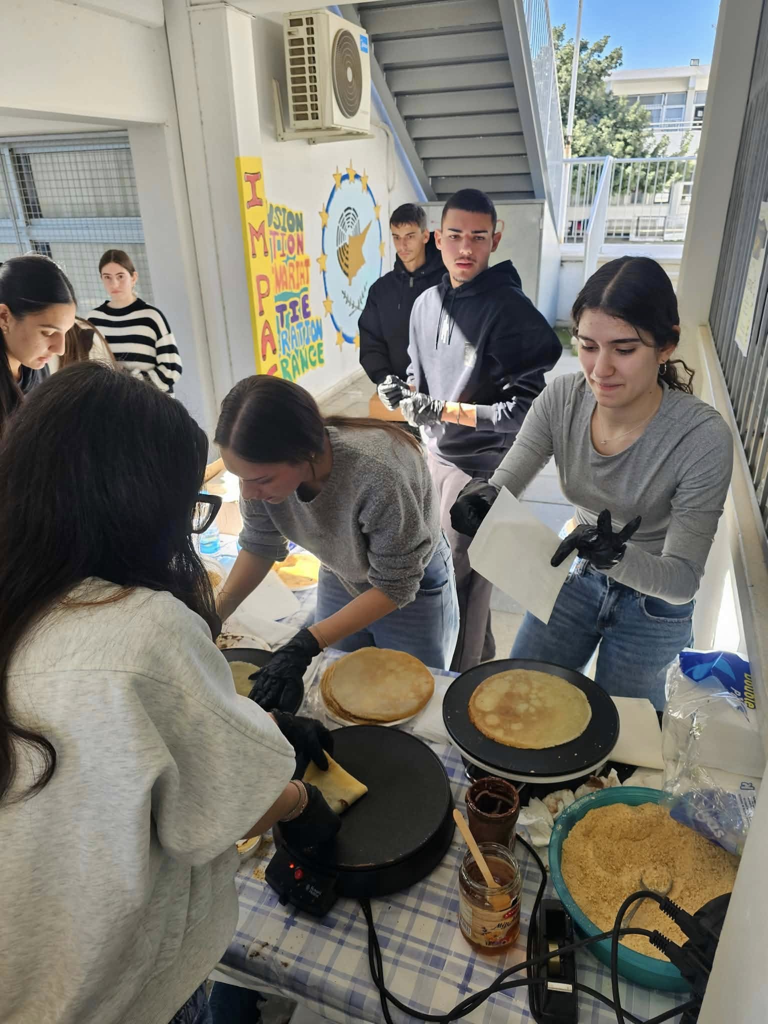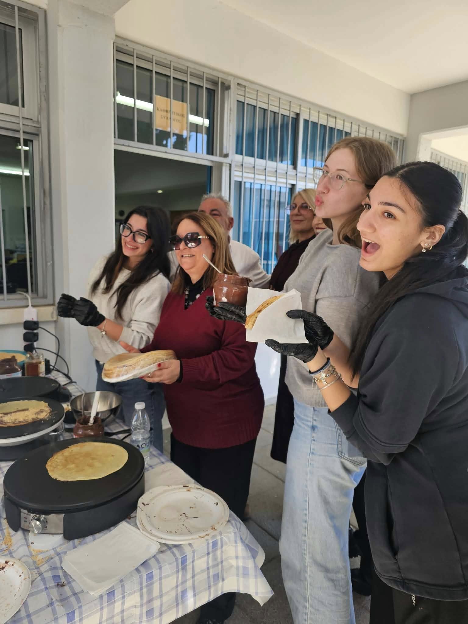 Η μέρα μας μύρισε μερέντα και βούτυρο, αφού τιμήσαμε την Παγκόσμια Ημέρα Κρέπας σήμερα στο Σχολείο μας! Οι καθηγητές και οι καθηγήτριες των Γαλλικών ξεσήκωσαν με γαλλικά τραγούδια ένα ολόκληρο Σχολείο, για να γευτεί το αγαπημένο γλυκό και να συμβάλει στην ενίσχυση του Ταμείου Πρόνοιας! Αρωγός της προσπάθειας ο Σύνδεσμος Γονέων που έτρεξε να προμηθεύσει την ομάδα προετοιμασίας με τις πιο εύγευστες κρέπες της γειτονιάς!