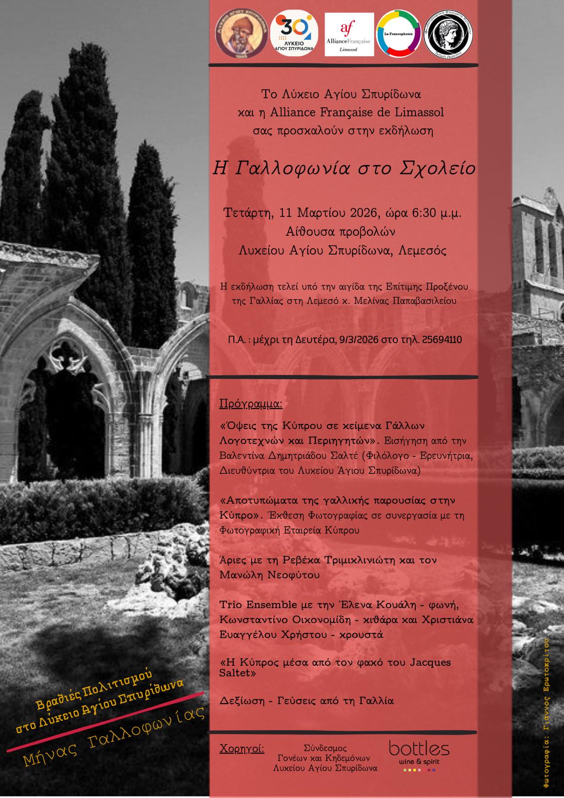 Βραδιές Πολιτισμού στο Λύκειο Αγίου Σπυρίδωνα "Η Γαλλοφωνία στο Σχολείο"